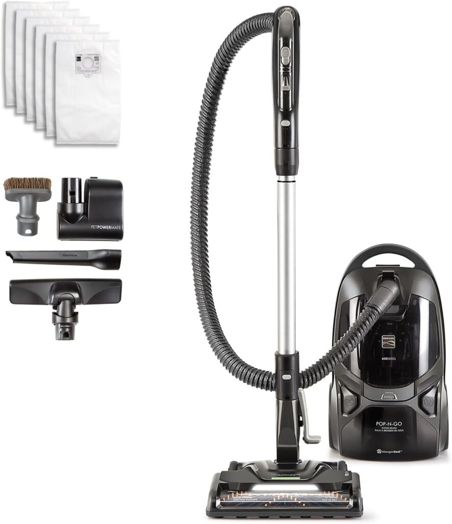 The Kenmore DU1275 FeatherLite is the lightest machine on this list, weighing just 11 lbs. Despite this, it delivers a 3X larger dust cup capacity than comparable compact uprights, along with the Hair Eliminator brushroll technology that prevents tangles during cleaning. It includes four height adjustment settings, swivel steering, and seven feet of extended reach via hose and accessories. It is priced at approximately $150 to $180 on Amazon.
