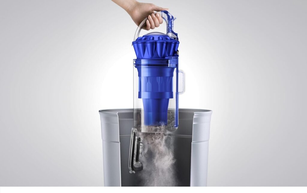 The hygienic bin ejection system means you rarely need to touch the collected debris. However, you should wipe the bin interior with a dry cloth every few weeks to prevent dust residue from building up around the ejection mechanism. Furthermore, the cyclone shroud should be wiped occasionally to maintain airflow through the cyclones.